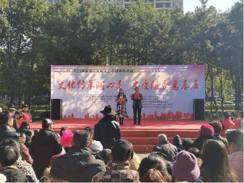 为扎实推进大祥区新时代文明实践工作深入开展,满足广大群众的文化需求,充分发挥大祥区新时代文明实践大舞台阵地作用,大力弘扬“奉献、友爱、互助、进步”志愿服务精神,进一步推进志愿活动常态化,12月22日下午2:30在大祥区铜玲社区文化广场开展了文化文艺志愿服务活动。